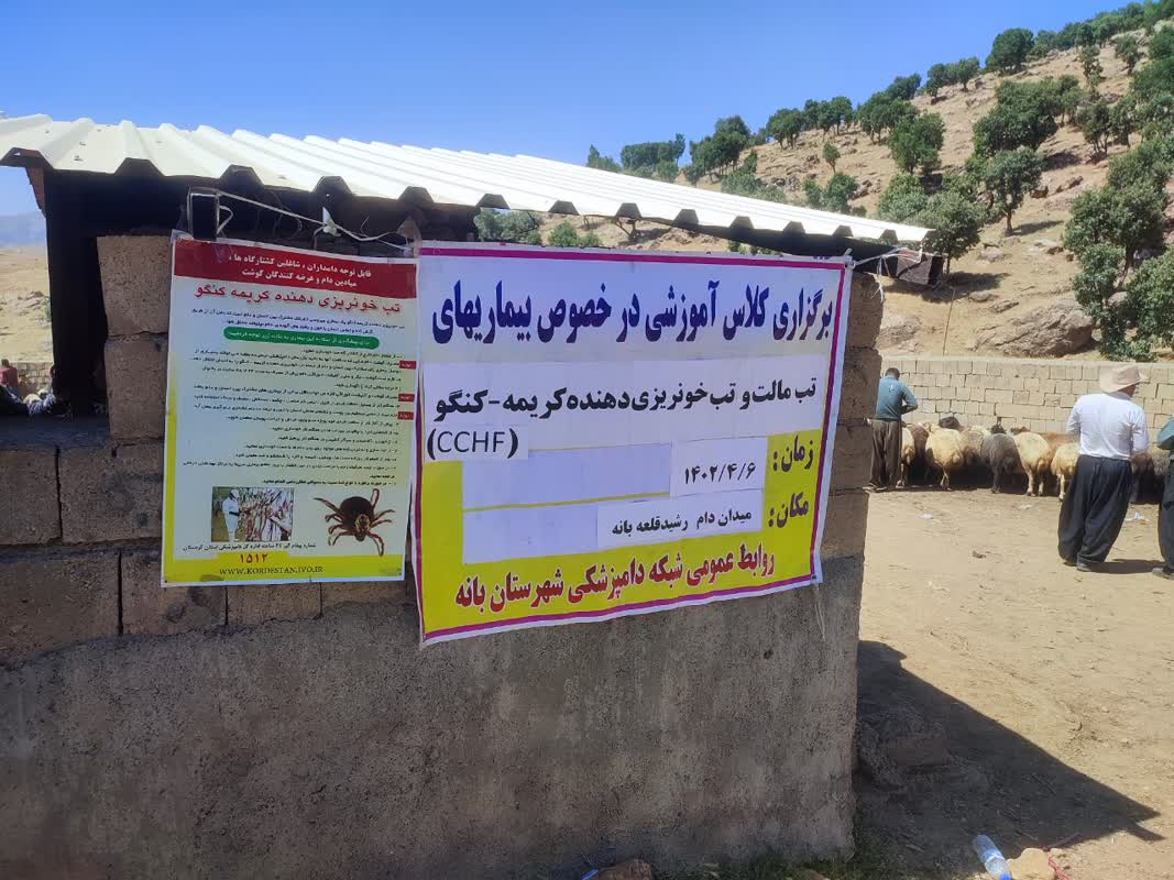 به گزارش روابط عمومی اداره کل دامپزشکی استان کردستان، در مورخ: 6 تیرماه 1402 در میدان دام برادران سلیمی(رشید قلعه) شهرستان بانه کلاس آموزشی در خصوص بیماری های بروسلوز و تب کریمه -کنگو توسط کارشناسان شبکه دامپزشکی بانه برای چوبداران و دامداران شاغل در این میدان برگزار گردید.