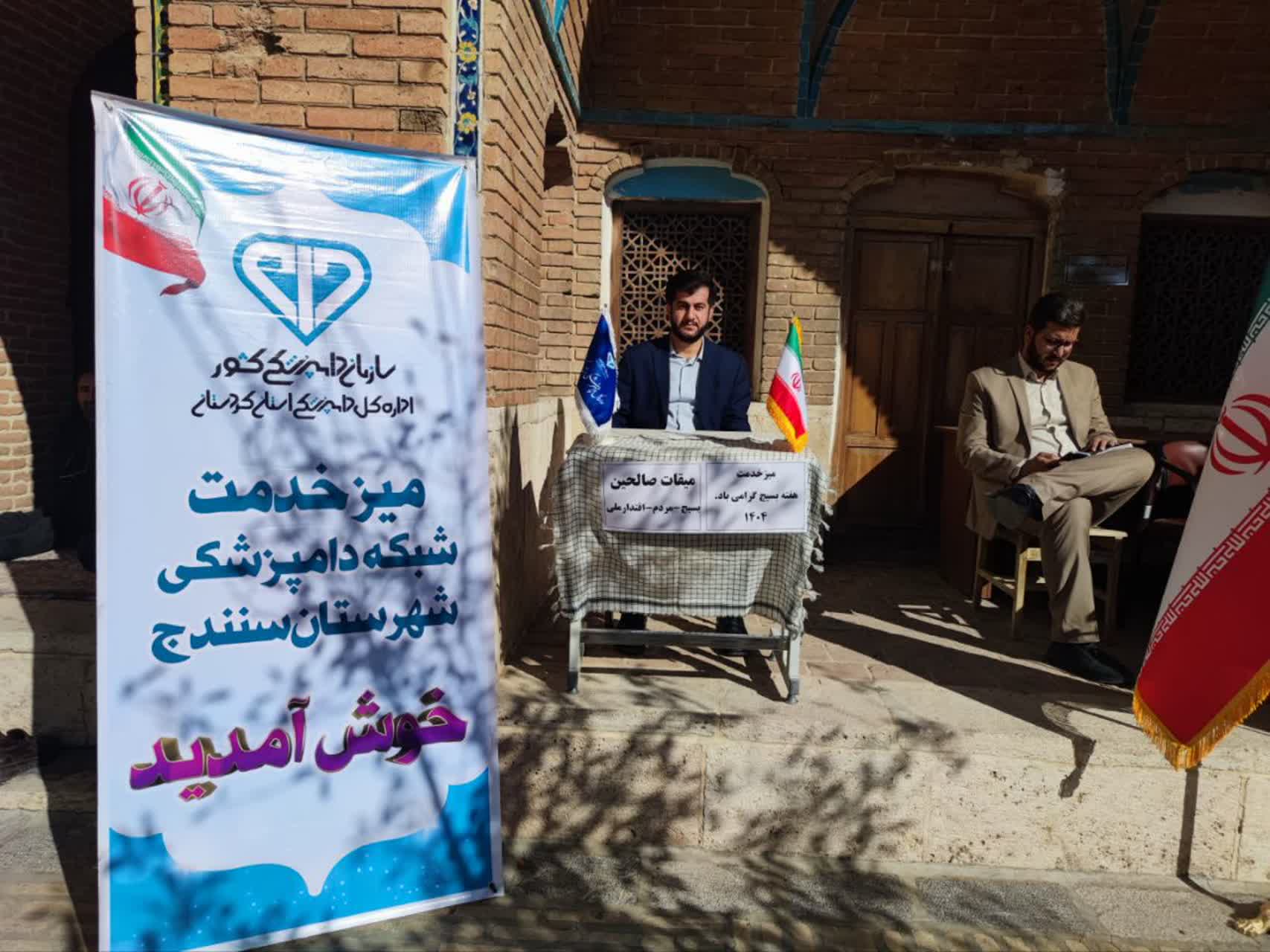 به گزارش روابط‌ عمومی اداره‌ کل دامپزشکی استان کردستان، هم‌زمان با هفته بسیج، میز خدمت شبکه دامپزشکی شهرستان سنندج در محل مسجد جامع برپا شد. در این برنامه، رئیس شبکه دامپزشکی سنندج ضمن حضور فعال، پاسخگوی مراجعات و مطالبات شهروندان بود.