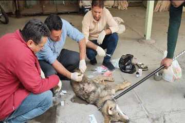 نجات یک قلاده گرگ زخمی با همکاری اداره محیط زیست و شبکه دامپزشکی شهرستان کامیاران
