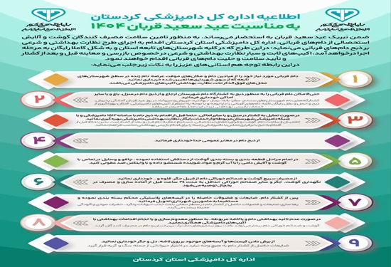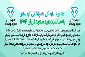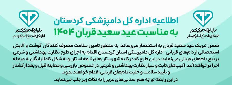 اطلاعیه اداره کل دامپزشکی کردستان به مناسبت عید سعید قربان 1404