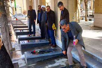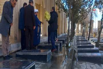 غبار روبی گلزار شهدا در دهه مبارک فجر انقلاب اسلامی با حضور مدیرکل، معاون توسعه و روسای ستادی اداره کل دامپزشکی استان کردستان