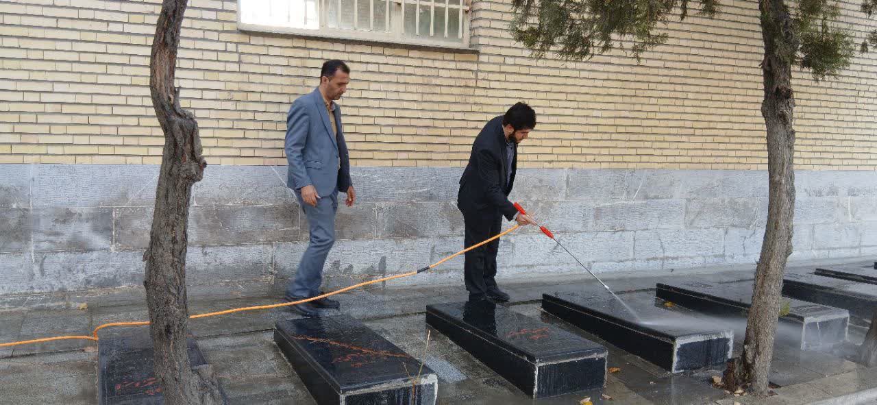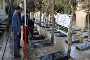 مراسم غبارروبی و عطرافشانی مزار شهدا با مشارکت شبکه دامپزشکی سنندج برگزار شد