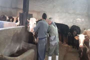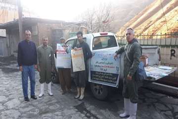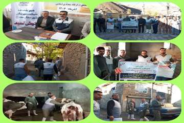 ارائه خدمات رایگان دامپزشکی در روستای هشمیز سنندج به مناسبت هفته بسیج