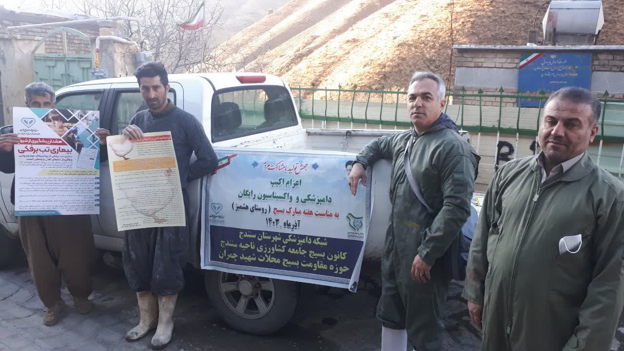 رئیس شبکه دامپزشکی شهرستان سنندج، ضمن تبریک فرارسیدن هفته بسیج، اظهار داشت: در این اردو خدمات متنوعی به صورت رایگان به دامداران روستای هشمیز ارائه شد. این خدمات شامل واکسیناسیون دام‌های سنگین علیه بیماری‌های لمپی اسکین و بروسلوز، واکسیناسیون گوساله‌ها علیه بروسلوز و واکسیناسیون سگ‌های صاحبدار علیه بیماری هاری بود. همچنین، توزیع رایگان سموم ضدانگل‌های خارجی، سم‌پاشی جایگاه دام‌ها، توزیع آجر معدنی رایگان بین دامداران، ویزیت رایگان و معاینه دام‌های بیمار و ارائه راهکارهای درمانی لازم از دیگر خدمات ارائه شده در این اردو بود.