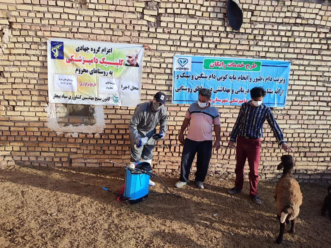 اعزام گروه جهادی دامپزشکی شهید ابراهیم هادی به مناطق محروم شهرستان بیجاردر قالب خدمات رایگان همزمان با رزمایش جهادگران فاطمی۴