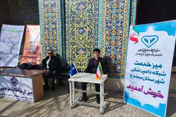 برپایی میز خدمت شبکه دامپزشکی سنندج در نماز جمعه مسجد جامع به مناسبت دهه مبارک فجر