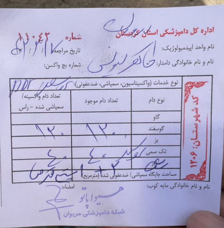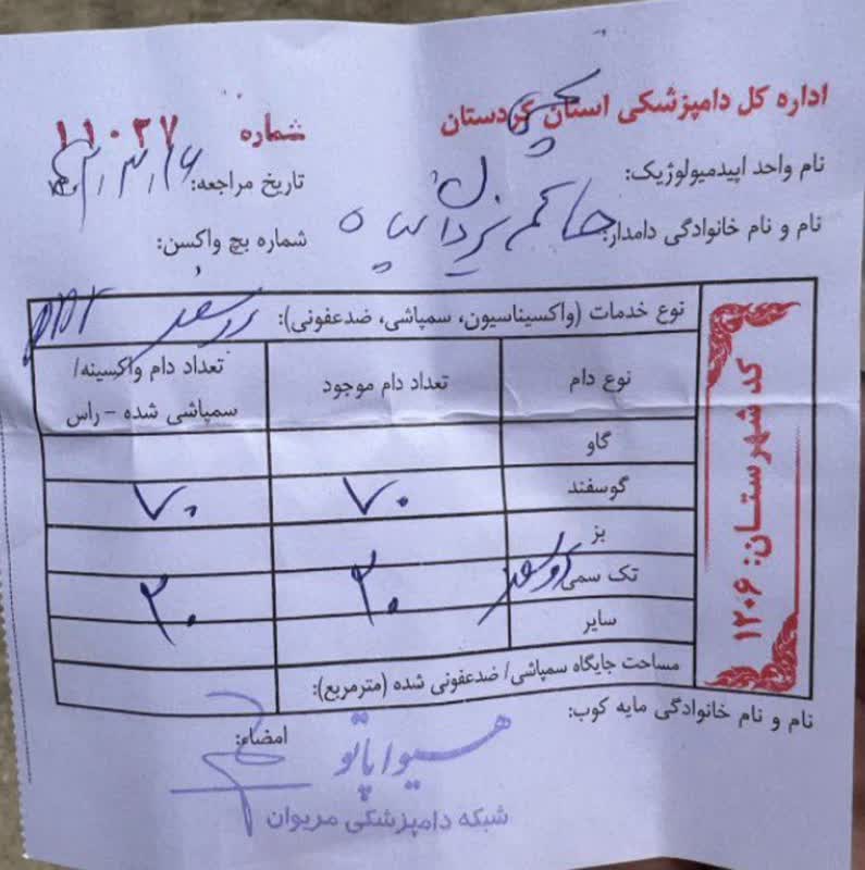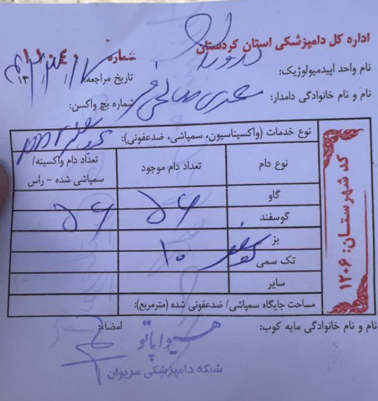 بازدید سرزده مدیرکل دامپزشکی استان از عملیات واکسیناسیون دامی در روستاهای مریوان