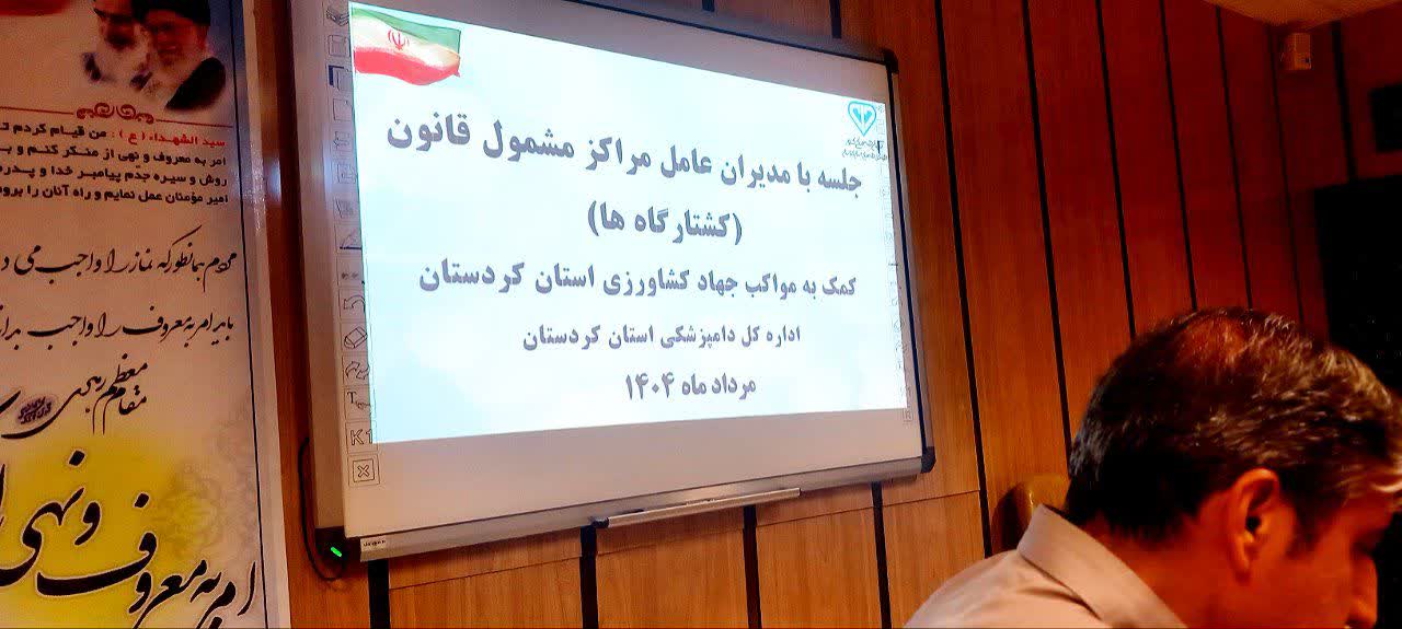 برگزاری جلسه با مدیران عامل مشمول قانون کشتارگاهها جهت تشریح مواد قانونی مربوط به عوارض قانون ذبح و صید شرعی و کمک به مواکب جهاد کشاورزی استان کردستان 1404/05/12 - 11:32 - تعداد بازدید: 23 - کد خبر : 343408 - گروه خبری : - تعداد نظرات : 0